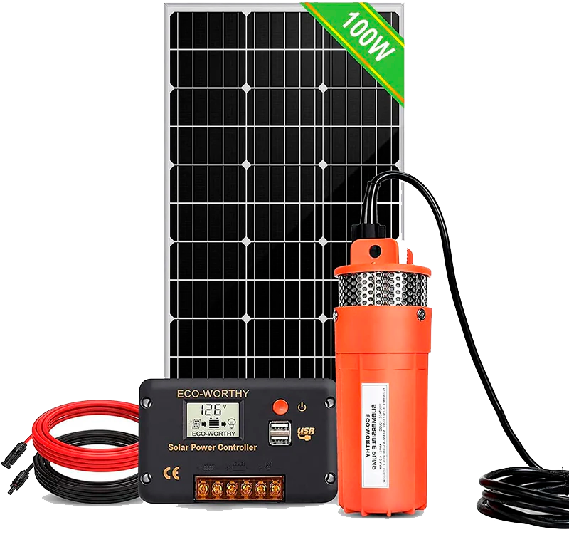 SynerTech presenta: Bomba de Agua Sumergible Solar de 100W, 12V – Set de 4 Piezas. Una solución eficiente y ecológica para el suministro de agua en zonas sin acceso a la red eléctrica. Ideal para riego en zonas remotas, jardines, cultivos agrícolas, llenado de tanques, fuentes y más. Incluye panel solar de 100W, capaz de convertir la luz solar en energía de corriente directa para alimentar la bomba sin necesidad de baterías ni conexión eléctrica. Funcionamiento óptimo en cualquier área expuesta al sol. Capacidad estimada de elevación de agua: hasta 1 metro de altura. Este sistema compacto y autónomo es perfecto para quienes buscan una alternativa sostenible y práctica para el manejo del agua.