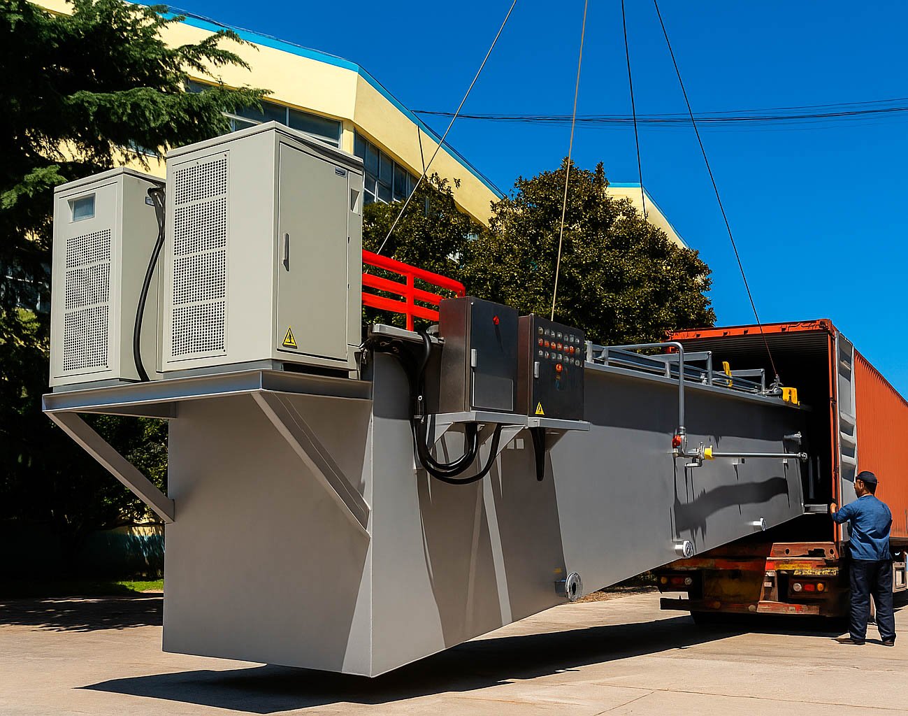 Esta planta de tratamiento de aguas residuales destaca por su diseño modular y flexible, que permite integrar múltiples etapas de pretratamiento y tratamiento primario en una sola unidad compacta. Según las características del afluente, puede incluir sistemas de cribado, decantación por placas inclinadas, flotación por aire disuelto (DAF) y procesos de oxidación avanzada.